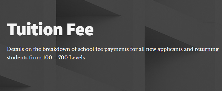 A minimum of ₦160,000.00 (inclusive of the Acceptance Fee) is payable before or on the resumption of the first semester by New Students, while Returning Students are to pay a minimum of ₦100,000.00 Balance of ₦100,000.00 and ₦80,000.00 payable by Science and Non-Science Students, respectively, before or on resumption of the second semester.